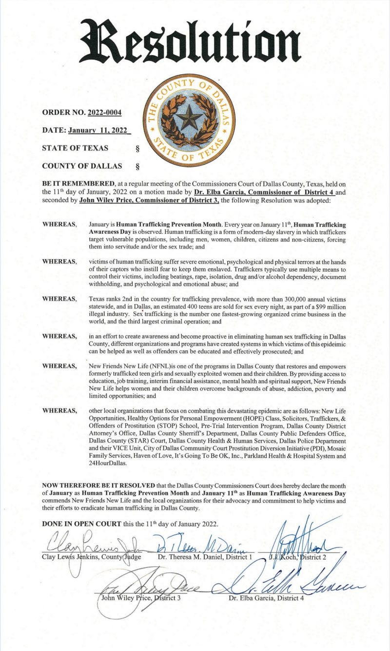 Resolution of Dallas Country - January is Human Trafficking Awareness month