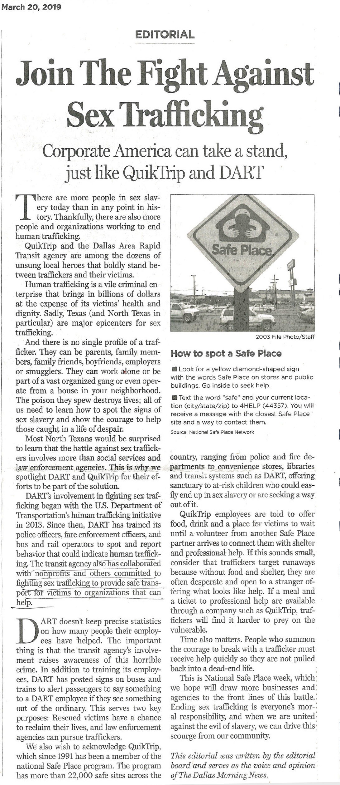 Editorial from the Dallas Morning News on March 22, 2019 – use your ‘back’ button to return to the previous page.